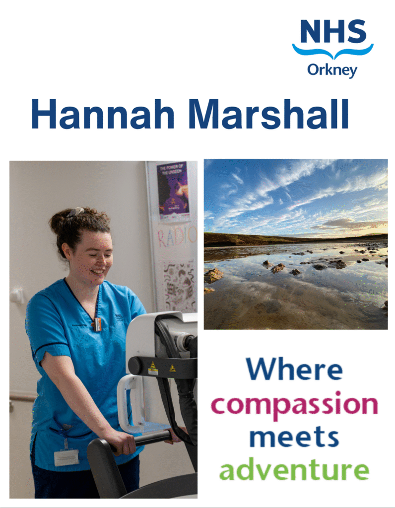 Since joining NHS Orkney, Hannah has progressed to Band 6 within eight months, trained in advanced imaging, and qualified as a student practice educator. She recently completed training to justify oncology CT scans, adding another skill to her growing portfolio.