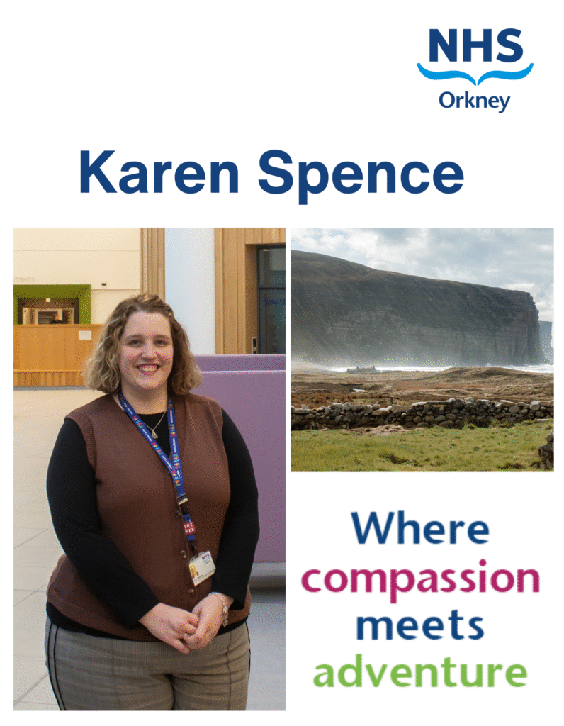 Karen’s journey with NHS Orkney began in 2010, inspired by a strong family connection to nursing, both parents and two sisters in the profession, and by the organisation’s reputation as one of the largest and most respected employers in Orkney.